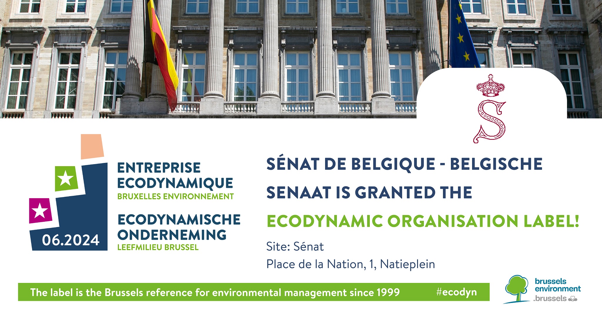 De Senaat kreeg op 24/06/2024 het label 'Ecodynamische Onderneming met 2 sterren' toegekend